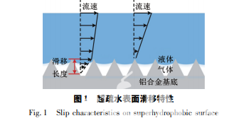 超疏水表面因其獨特的微納二元協同結構及憎 水特 性,在固液界面高效減阻領域具有廣泛應 用. 現有的超疏減阻表面大多采用傳統氟化物 分子層做表面修飾,但碳和氟之間的強極性鍵, 具有不易降解,對人體及生態具有潛在威脅、易水解 重復性差且價格昂貴的缺點. 本文提出一種可 實現固液界面減阻的無氟超疏水表面的制備新方 法,替代氟化物的改性使用,解決不環保、威脅人體及生態的問題. 將工業生產中應用最廣泛的鋁合金 做基底,符合規模化生產和可持續發展的需要.